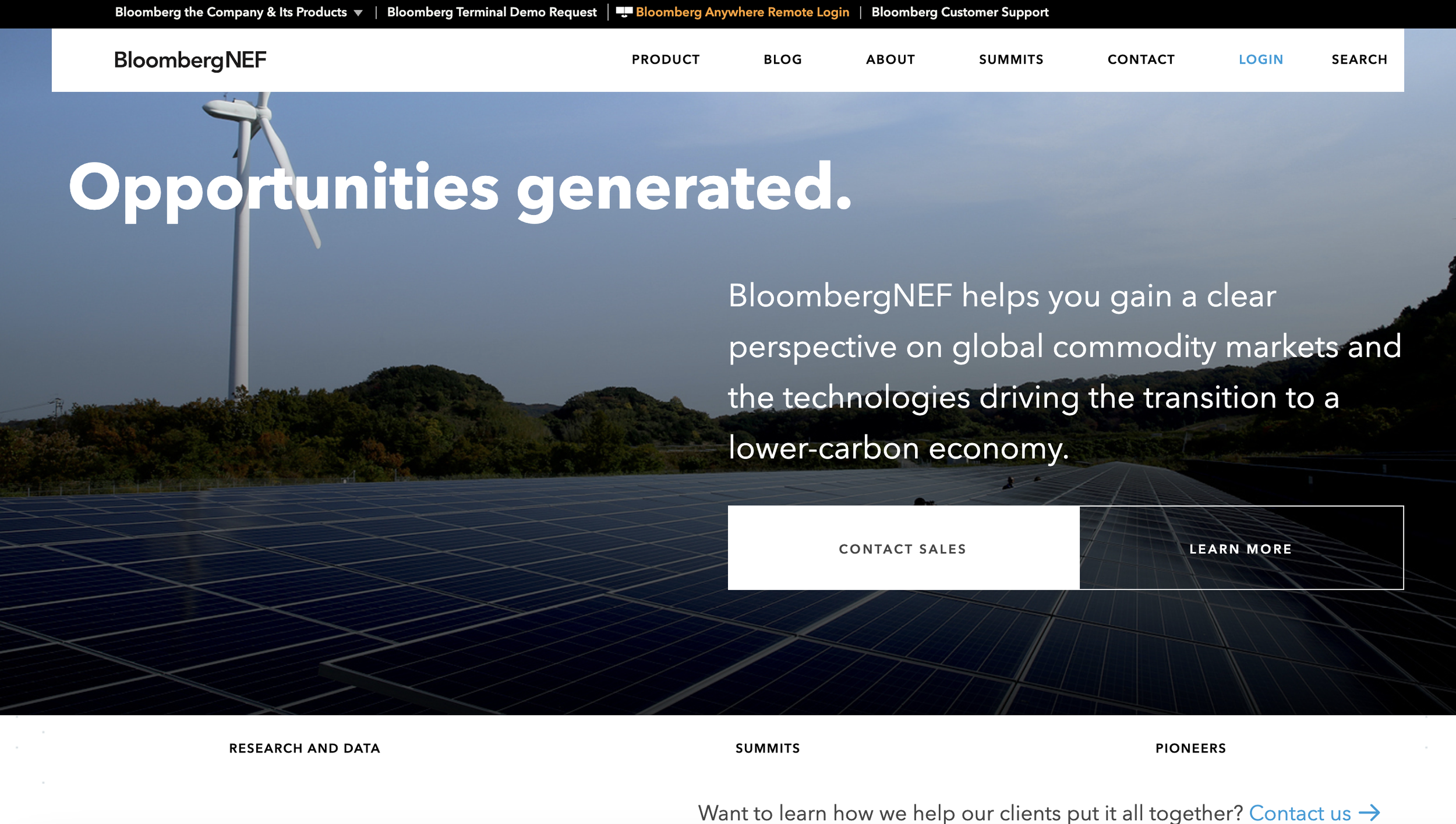 Bloomberg New Energy Finance (BNEF) is one of the world’s leading providers of strategic research, data, and analysis on the energy transition. Their insights help businesses, investors, and governments navigate the rapidly changing landscape of renewable energy, advanced transport, sustainable materials, and digital industry innovation.